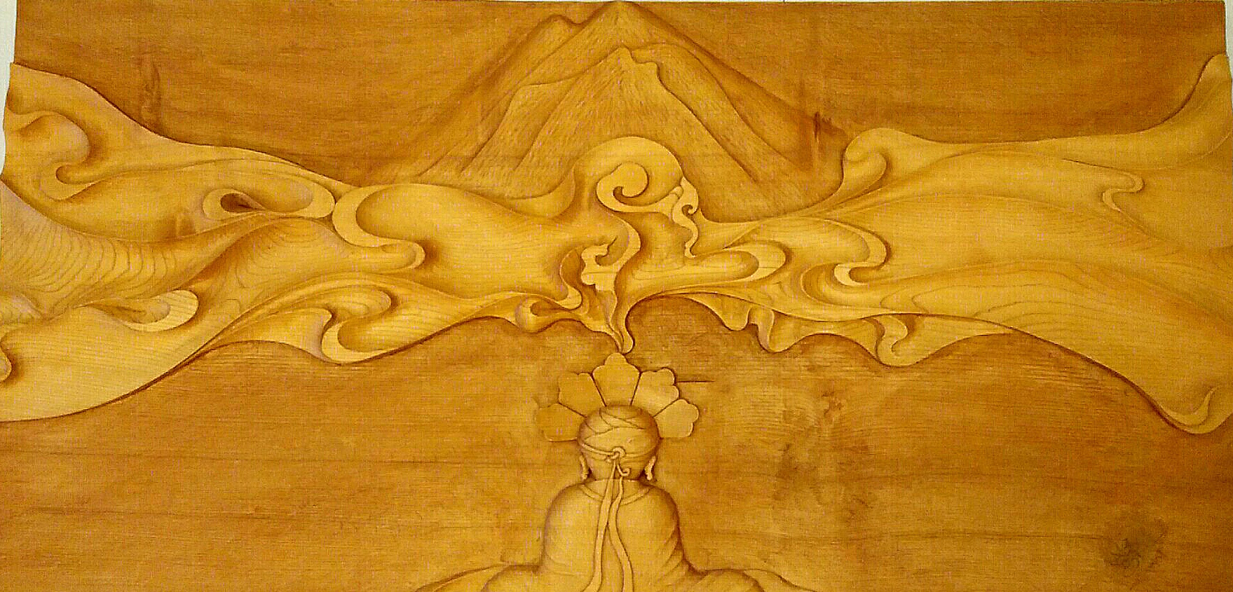 據古老的東巴經《崇搬圖》(創世紀)記載,在宇宙混沌萬物還沒有產生的時候,上方傳來一個美妙的聲音,下方冒出一個白氣,聲音和氣結合產生了天和地。